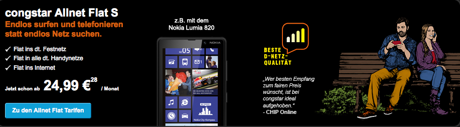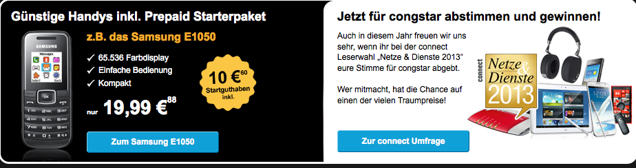 Anbietern wie E-Plus oder O2 wird oftmals nachgesagt, dass der Ausbau des eigenen Netzes in Deutschland nicht optimal sei. Vor allem im Vergleich zur Deutschen Telekom und Vodafone hinkt der Netzausbau ein wenig nach. Wenn Sie hierbei Bedenken haben sollten, dann greifen Sie am besten zu den Angeboten, die Sie im Online Shop von Congstar finden können. Das Unternehmen bietet nämlich ausschließlich Tarife und Prepaid-Aktionen an, womit Sie im D-Netz unterwegs sind. Somit können Sie sicher sein, dass Sie mit Sicherheit von der bestmöglichen Qualität in Ihrem Wohnort profitieren werden und stets erreichbar sind. Vergleichen Sie die Aktionen aber auch mit anderen Online-Anbietern aus der Kategorie der Handy- und Telefonshops.